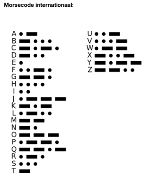Probeer de verschillende vormen eens in streepjes en punten over te nemen in je boekje. Gebruik de morsecodelijst hieronder. Welke zin kun jij ontcijferen?