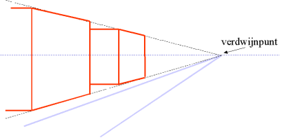 Dit punt ligt op de horizon en hier lijken alle lijnen naar toe te lopen.